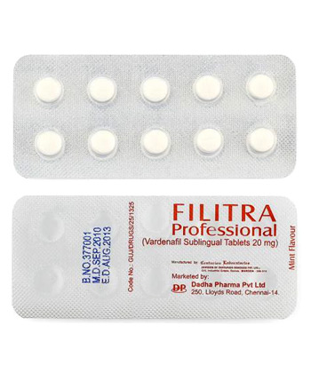 - Filitra Professional je určen k léčbě erektilní dysfunkce. Léčivo je inhibitory fosfodiesterázy typu 5, které zvyšují průtok krve do penisu.